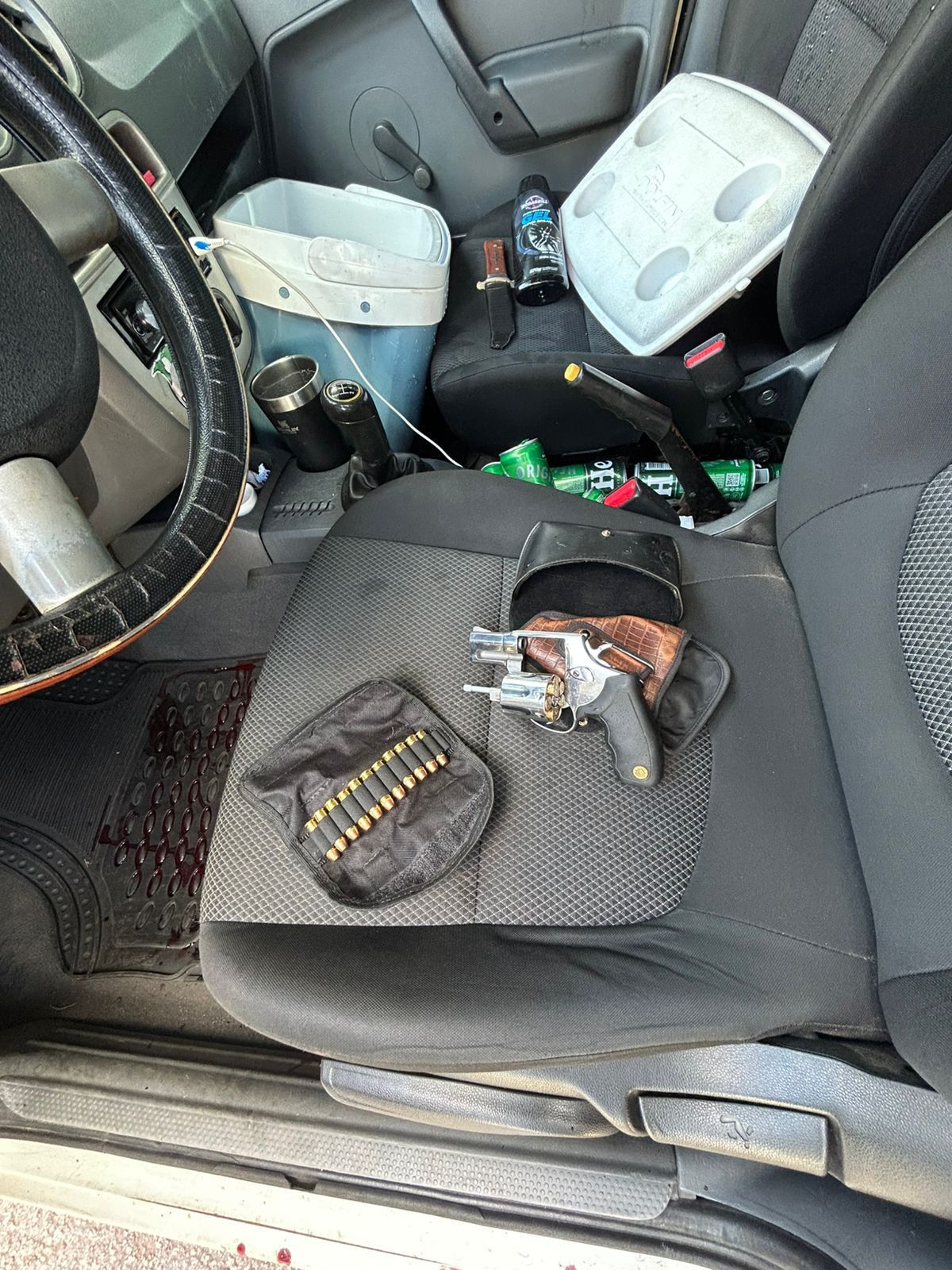 Nas proximidades, os agentes localizaram o veículo utilizado pelo homem. No interior do automóvel, foi apreendido um revólver calibre 38, com 17 munições intactas e uma já deflagrada.