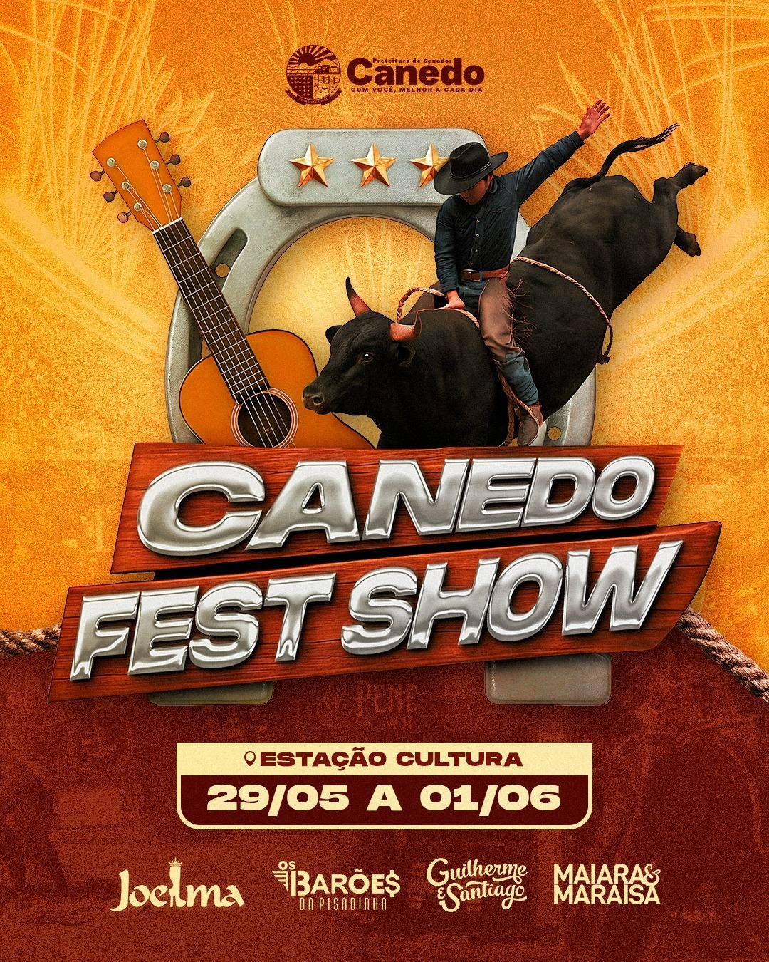 A Prefeitura de Senador Canedo anunciou a realização da segunda edição do Canedo Fest Show, evento que celebra a cultura sertaneja e integra a programação oficial do aniversário de 36 anos da cidade. De 29 de maio a 1º de junho, a Estação da Cultura vai se transformar em um espaço de lazer, emoção e tradição, reunindo famílias, apaixonados por rodeio e fãs de música sertaneja.