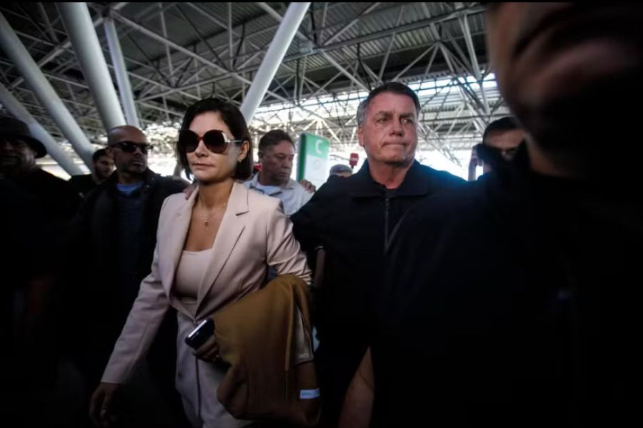 Impedido de sair do país, o ex-presidente Jair Bolsonaro acompanhou a mulher, Michelle Bolsonaro, até o aeroporto de Brasília, onde ela embarcará para participar da cerimônia de posse de Donald Trump como presidente dos Estados Unidos, na segunda-feira (20).