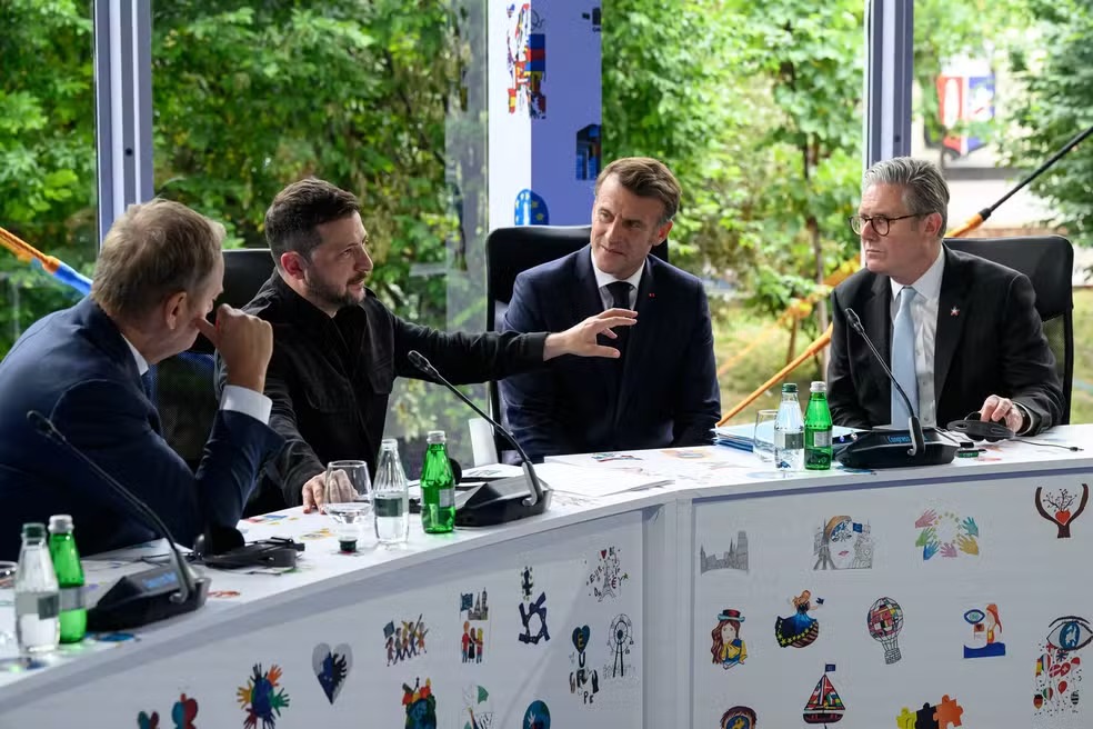 Em uma declaração conjunta, o presidente francês, Emmanuel Macron, e os primeiros-ministros canadense, Mark Carney, e britânico, Keir Starmer, condenam a “odiosa linguagem usada recentemente por membros do governo israelense” e advertem que o deslocamento forçado permanente de civis viola o direito internacional humanitário.