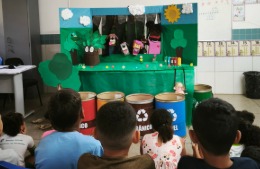 A atividade contou com uma apresentação lúdica em teatro de fantoches, feitos com materiais recicláveis, com o objetivo de conscientizar os alunos sobre a separação correta do lixo e atitudes simples de preservação ambiental.