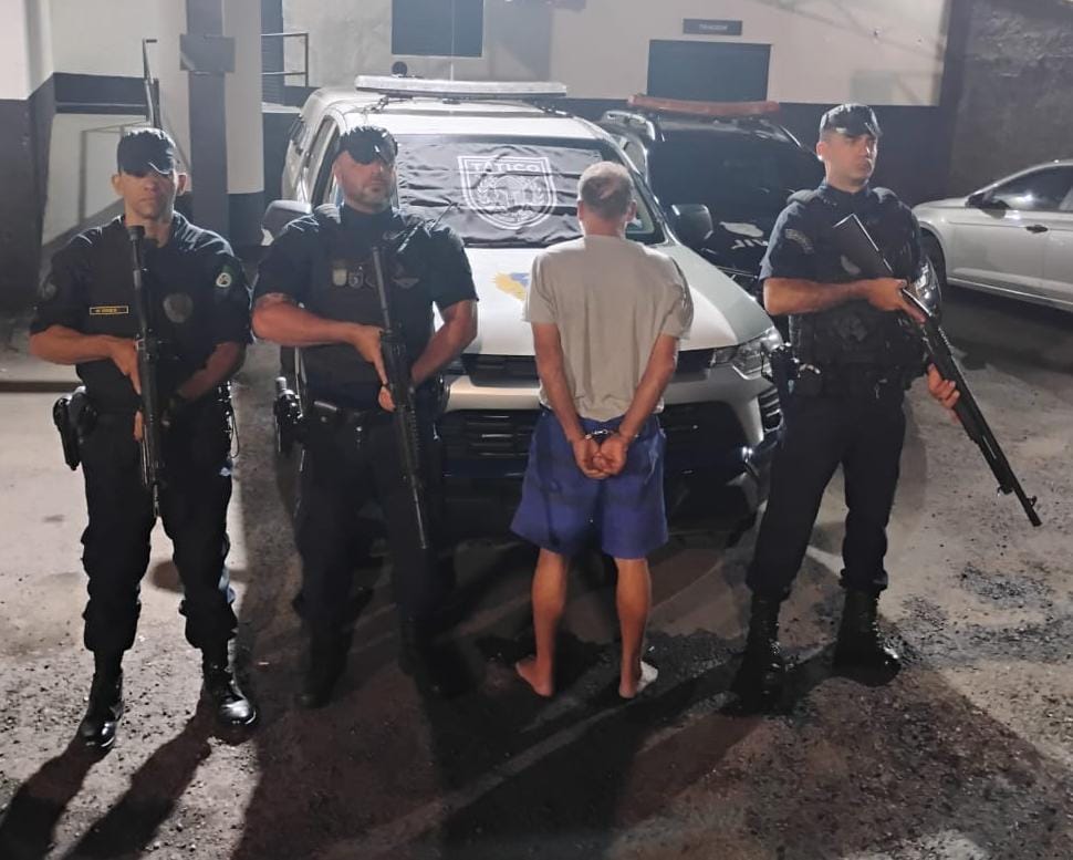 Ao notar a aproximação da guarnição, o suspeito demonstrou nervosismo e entrou rapidamente por um portão que dá acesso a diversas kitnets. Diante das informações e da gravidade da situação, a Equipe Tática realizou a busca no interior do local e conseguiu localizar o indivíduo.