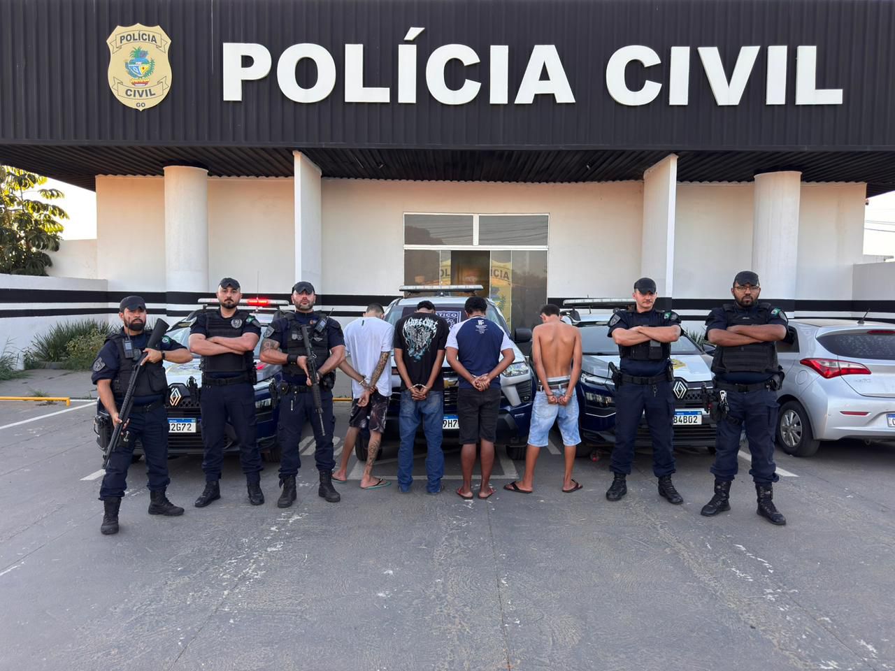 Quatro suspeitos foram detidos e encaminhados à Delegacia de Polícia, onde a perícia confirmou a natureza das substâncias apreendidas.