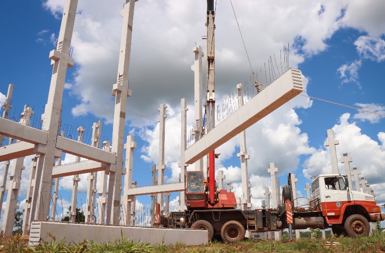 O sonho do Hospital Municipal de Senador Canedo está cada vez mais perto de se tornar realidade. A construção entrou em uma etapa decisiva nesta semana, com o início da montagem das travas estruturais, vigas e lajes que compõem o primeiro pavimento. Após a conclusão de toda a fundação e das pilastras de sustentação, o prédio agora começa a ganhar altura e corpo.