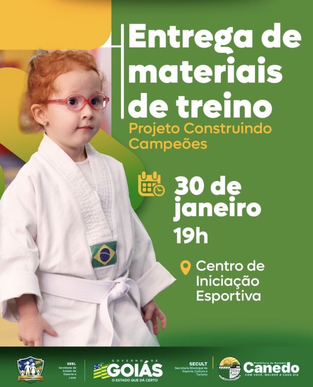 O Projeto Construindo Campeões promove, no próximo dia 30 de janeiro, uma importante ação voltada ao fortalecimento do esporte e da formação de jovens atletas em Senador Canedo. A iniciativa prevê a entrega de materiais de treino, que irão contribuir diretamente para a qualidade das atividades esportivas oferecidas à comunidade.