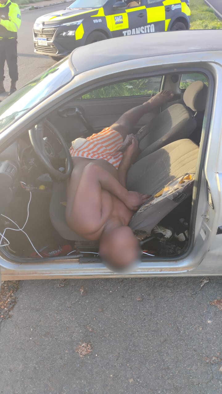 Ao se aproximarem, os agentes perceberam que o motorista estava dormindo dentro do carro. A equipe tentou acordar o condutor diversas times, porém sem sucesso. Dentro do veículo foram encontradas latas de cerveja, frascos de bebida alcoólica e uma faca sobre o painel.